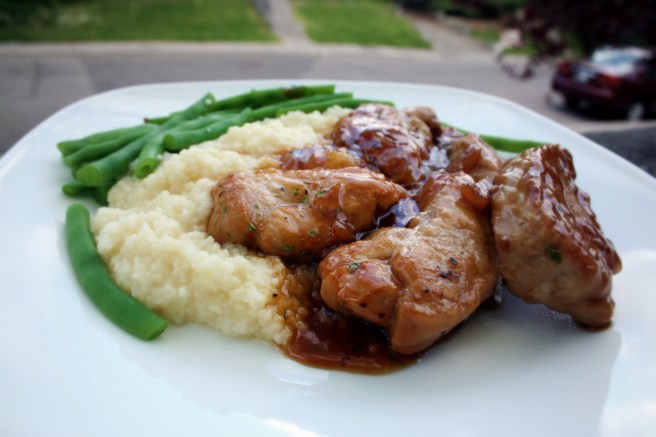Although I’m super tired after my first week of work (It’s an AWESOME job, but I’m not used to 7 a.m. mornings – yes, I am whining a bit), I decided it was important to celebrate the completion of the week with a good dinner. I came home after work and started flipping through my trusty Canadian Living cookbook. I had marked this recipe as one I wanted to try, so I figured I would go for it tonight. I promptly biked down to the grocery store and picked up the few ingredients I was missing and then, with the sounds of a Friends episode blaring in the background, I started cooking. And here we are! The dish tasted so good, and since it made enough for a small family, I will have plenty of leftovers for tomorrow. I love my leftovers!