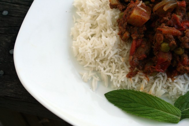 Today when I got off work I was almost absolutely positively sure I was going to bike over to the nearby-ish chinese food restaurant and pick myself up a delicious combo number 10. After realizing I was far too poor and far too lazy to bike all the way to Hog’s Back (really not that far, but Wednesdays are exhausting, are they not?) I decided I would attempt to recreate another one of Canadian Living’s cookbook specialties. I had some extra ground beef hanging around the freezer, and had been craving indian food almost as badly as chinese, so I decided this would be the perfect recipe for today!