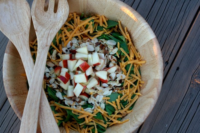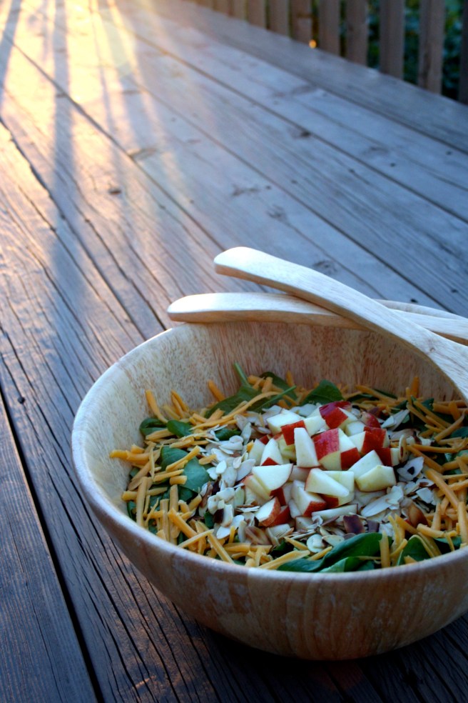 The three main add-ins to this salad: apples, toasted almonds and cheddar cheese, made a HUGE difference and I got several compliments throughout the meal from both my mom and dad. My younger brother, however, refused to eat more than a single leaf, at which time he proclaimed that the salad tasted like Lay’s chips. Regardless of my brother’s distaste, the entire big bowl of salad was demolished by the end of dinner and, as my mom just said, “there’s no bigger compliment than to have an empty bowl at the end of the meal.”