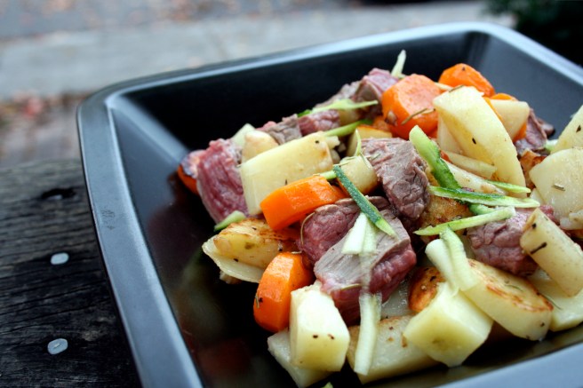 The reason for making this dinner was pretty simple: I was craving steak SO badly, haven’t eaten potatoes in half a year and wanted to use up the rest of my farmer’s market carrots. This meal took about twenty minutes to make, and allowed me to utilize our beautiful non-stick pan as a BBQ alternative.