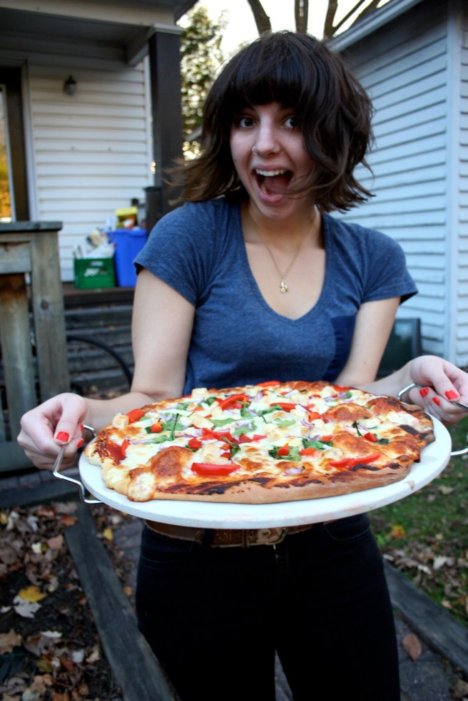 Special thanks goes out to Mer-Face (Ariel) for helping hold my pizza while I took pictures of it! Balancing this baby on the patio wall would not have been easy, so I was mucho grateful! Also, she got a new profile picture, bonus!