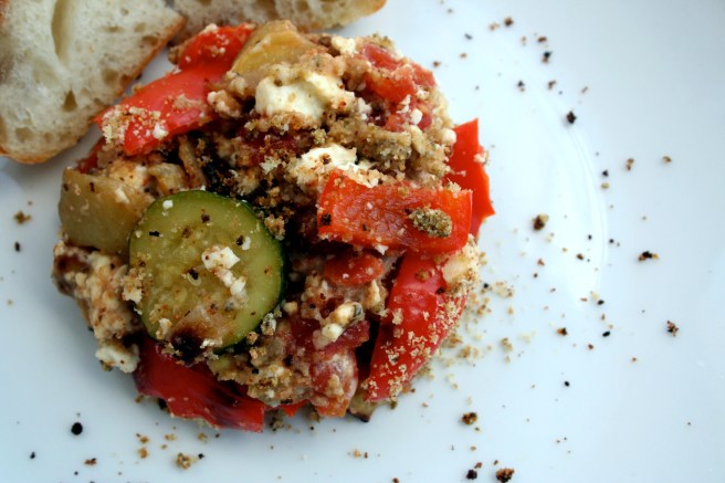 This ratatouille was good enough to almost convert me to vegetarianism. Get this: the only thing in this dish was zucchini, tomatoes, red pepper, eggplant, onion, and feta cheese (Mmmmm). I hope you’re impressed mom. Considering I haven’t had time to really eat anything in the past week, this ratatouille was a wonderful vacation away from the occasional bowl of Cheerios and leftovers to which I have lately become accustomed. For anyone wanting a cheap and easy winter meal, this is the recipe for you.