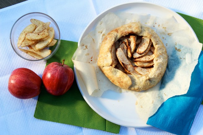 The first galette was made in Toronto last weekend when I went to visit Matt. Since we were going to one of his friend’s house for a food party on Friday night (for the record, Matt’s friend is Brian, and he has a really awesome blog which you should all read and love), I needed to think of something that could be made using Matt’s limited baking supplies (really, no parchment paper?). The answer was this apple galette. I had been planning on making it earlier in the week, but had completely run out of time. And so, I brought the apples to Toronto in hopes of making the dessert there. Backstory with the fruit: I accidentally bought two kilograms instead of two pounds of apples. This was a tragic mistake.