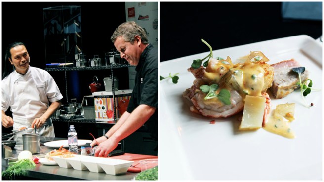 Ah yes, the famous Chef Susur Lee! I think we were all in awe as this statuesque chef took the stage for his demo with Restaurant Ei8hteen’s Chef Matthew Carmichael. This was a really interesting chef pairing, I thought, since the two chefs used to work together. It was the reunion of the apprentice and the master.