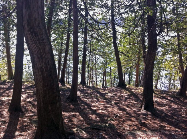 I drag my bike over the oak leaves and mossy stones. I wonder if this mesh of decomposing vegetation and fresh new life beneath my feet has been seen this season. My head darts around with every clumsy branch snap, my imagination too active from nights of reading and watching The Hunger Games and Game of Thrones. I make a promise that I will return to this place next with friends. (editor’s note: the picture below is from my Wednesday afternoon spent in such place).