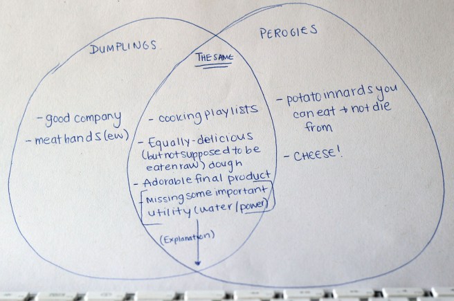 Making these perogies reminded me greatly of the two years when my friend Gord and I made dumplings/potstickers for Chinese New Year (year one, year two).