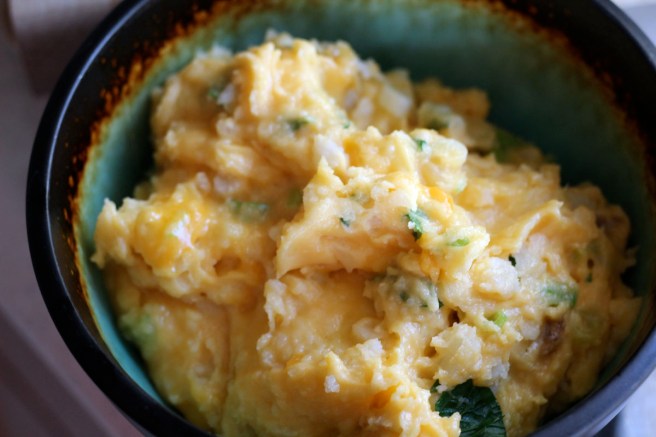 Mash and add the cheddar, butter, herbs and salt. Your filling is done.