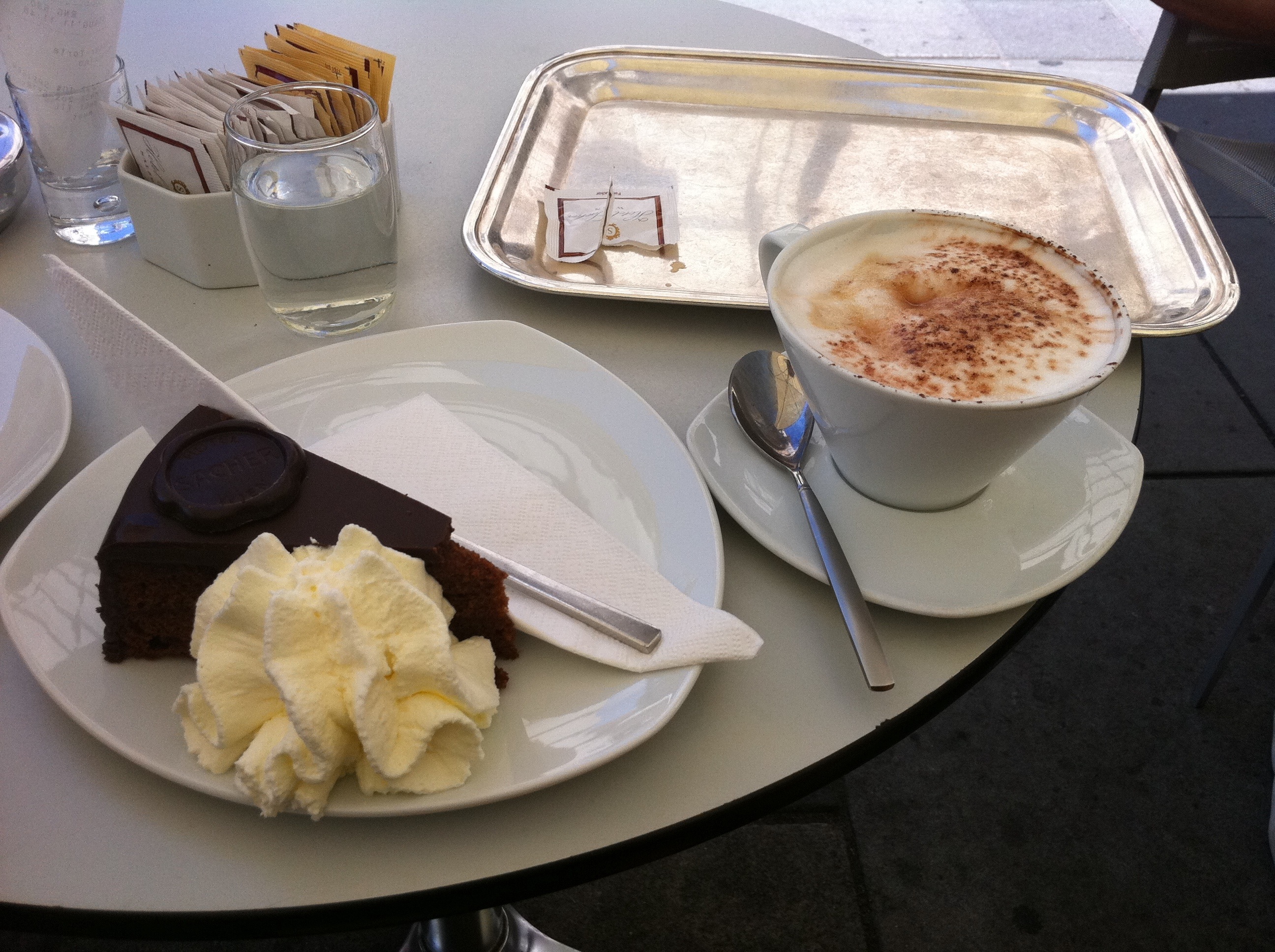 Thanks to Gord’s masterful navigational skills (minus the time he got us devastatingly lost in Pisa..), we got to the cafe quickly and, before I knew, were presented with a generously-sized piece of cake and mountain of whipped cream.