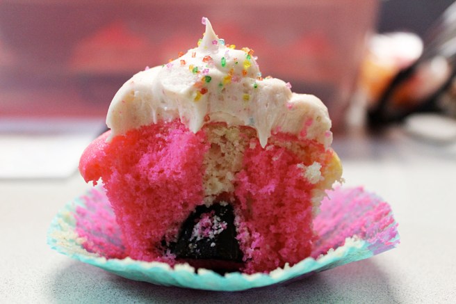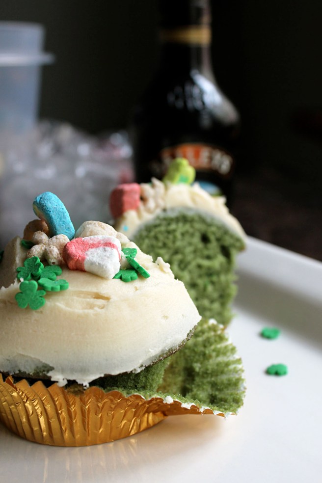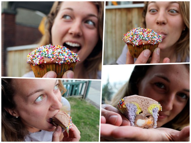 Inspired by Jen’s chocolates, I set out to create a chocolate dessert of my own. I knew I wanted to incorporate lots of alcohol into these cupcakes, so I adapted Smitten Kitchen’s Car Bomb Cupcakes (which look unbelievable) and used the Bailey’s buttercream icing recipe I first created for my green velvet cupcakes on St. Patrick’s Day last March. While much of the beer flavour baked off, it did leave the cake with a moist and even consistency. Absolutely delicious, though I regret eating my cupcake prior to icing and moustache-ing.