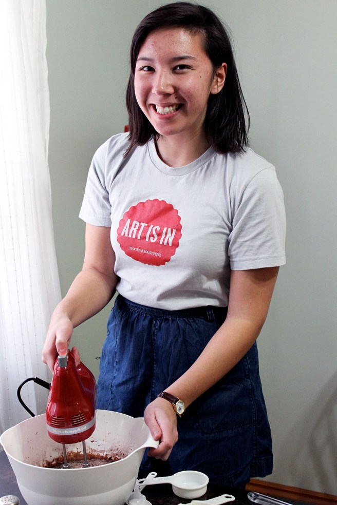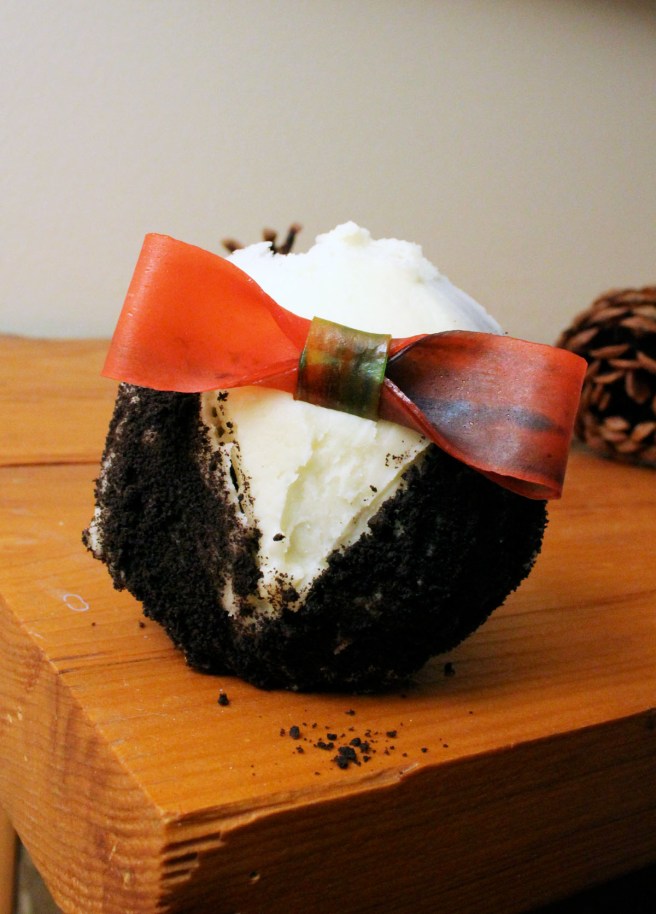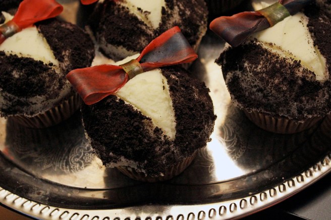 I woke up at 7 a.m. on Friday morning to make the mint buttercream icing for the cupcakes (once again, I am so grateful for the silence of my new Kitchenaid hand mixer). Freya and I have a new roommate, who has already noticed that we bake way more than the average people. She came downstairs on Friday to the sight of me making Oreo cookie crumb suits for my cupcakes. I am not helping my cause, am I?