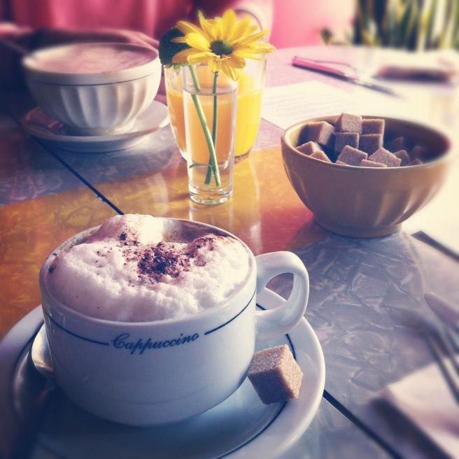 After dinner we basked in the contentment of our full stomachs. I drank a quick cup of coffee (I didn’t want to fall asleep in the movie my mom and I were going to see) in a mug that looked as though it were stolen straight from an industrial design student’s workshop.
