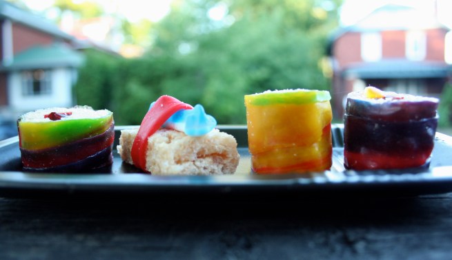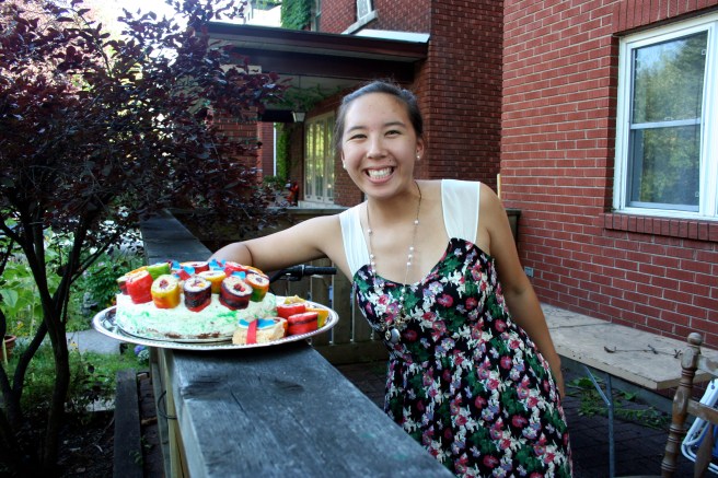 I’m staying with my aunt in Toronto right now, and since she doesn’t really bake, I had to buy a lot of the dessert-making necessities. This purchasing saw a small bag of cake flour explode on my black jacket last Wednesday and several declarations of frustration silently aimed at the convenience store clerk, after his shop failed to sell mini eggs.