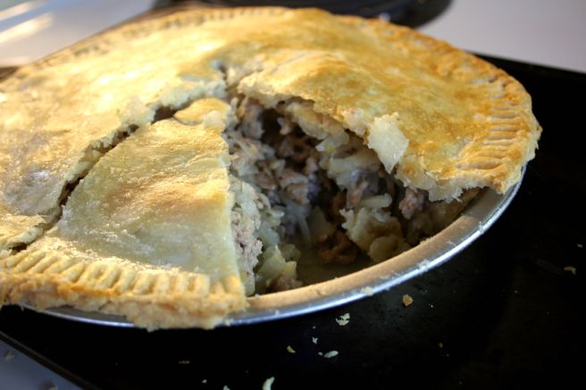 As the weather gets more and more cold, I begin to crave the warm heartiness that only homemade meals can bring. To celebrate the (partial) success of vegetarian week, I decided to make an appropriate follow up meal: tourtiere, the traditional French Canadian meat pie (or as I know it, the delicious meal that my mom always used to make in the depth of winter). Last year my mom sent me home with a meat pie after Thanksgiving and that baby miraculously got consumed within half a week.