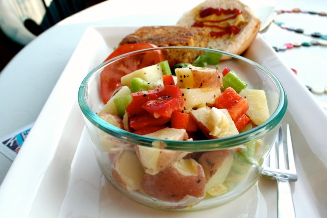 I sat in the window area where, if the place had been a clothes store, they would have had the creepy mannequins on display. Instead, there was an area scattered with fancily adorned pillows. After I finished my meal I stuck around and read for a bit. It was nice. I felt hippie-to-the-max, but hey, a girl’s allowed to feel like a flower child once in awhile, right?